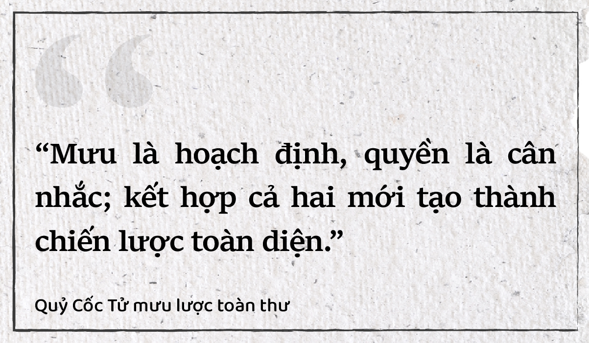 Thánh nhân thường giữ kín mưu lược, còn kẻ thiếu tinh tế lại hay phô trương. Người biết kìm nén cảm xúc, không bộc lộ yêu ghét mới có thể được giao việc lớn. Việc đã mất khó khôi phục, nguy nan khó đổi thành an toàn, chỉ có vận dụng mưu lược mới tránh được rủi ro. “Phép tắc đối nhân xử thế của thánh nhân cũng tinh tế ở chỗ giấu kín”, không dựa vào hình thức đạo đức bề ngoài, mà dựa trên sự phù hợp với quy luật vận động và tính thực tiễn. Quan điểm này của Quỷ Cốc Tử có sự tương đồng với tư tưởng của nhà chính trị Niccolò Machiavelli (1469 – 1527) – tác giả của cuốn Quân Vương – Thuật cai trị, một trong những đầu sách quý thuộc “Tủ sách Nền tảng Đổi đời”. Cả hai ông đều nhấn mạnh rằng để giành thắng lợi – trên chiến trường hay thương trường – cần mưu trí, chuẩn bị kỹ lưỡng, biết giữ bí mật và vận dụng linh hoạt nguyên tắc đúng thời điểm.