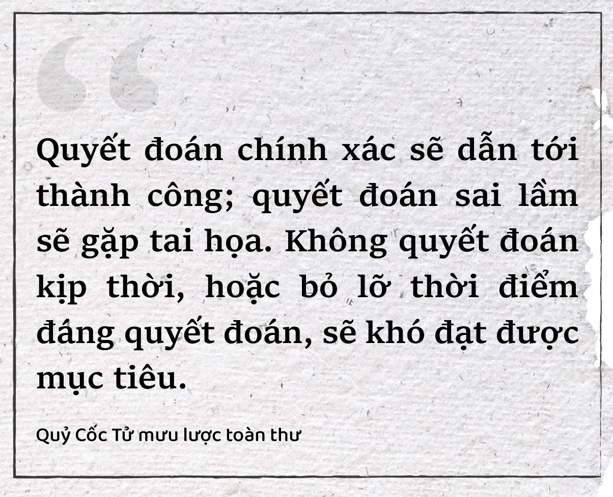 Người mưu lược không chỉ biết nghĩ xa, tính kỹ mà còn phải hiểu khi nào cần hành động dứt khoát. Quyết định là bước cuối cùng, là yếu tố biến mưu kế thành hiện thực. Kẻ do dự giữa hai con đường, dù nhận ra thời cơ nhưng vì chần chừ mà để lỡ, cuối cùng tự đưa mình vào thế bị động. Bởi vậy, Quỷ Cốc Tử nhấn mạnh: người có “quyết” là người dám gạt bỏ nghi hoặc, nắm bắt thời cơ và hướng đến đại cục.